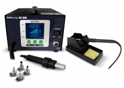 Estación de soldar combinada, integra soldador tipo lápiz y soldador de aire caliente (ideal para componentes SMD) con regulación de caudal de aire y regulación de temperatura. Incluye 4 puntas intercambiables para el soldador de aire caliente.
