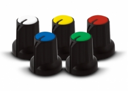 PERILLA NEGRA CON SUPERFICIE ROJA 15X16MM EJE ESTRIADO