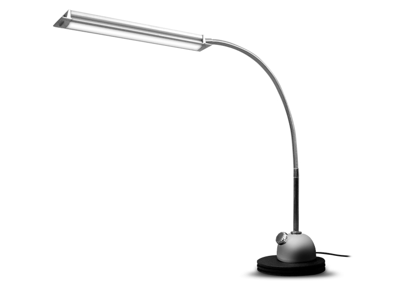 Diseñada para la iluminación en escritorios de trabajo o estudio. Dispone de un brazo flexible que permiten la orientación del foco lumínico y un dimer para controlar la intensidad del mismo.