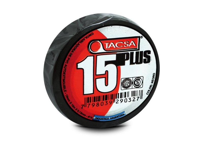 La cinta aisladora de PVC TACSA 15PLUS posee buenas propiedades dieléctricas, es flexible, elongable, resistente, tiene buena adhesión al cable y a su dorso, por lo que se adapta a las imperfecciones del empalme. Esta cinta es de fácil corte y auto extinguible según normas de seguridad.