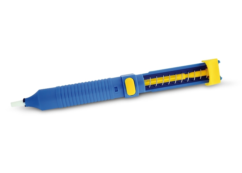 Elimina fácilmente las soldaduras de estaño, bastará con colocar la punta del desoldador sobre la soldadura que desea eliminar, fundir la soldadura con un soldador y pulsar el botón que ejecuta la succión.