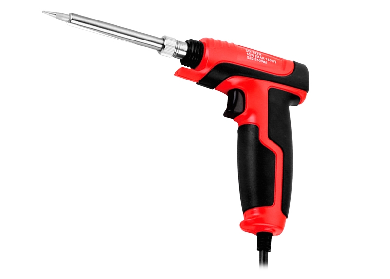 Soldador tipo pistola de dos potencias 30/130W. Con potencia inicial de 30W, al gatillar la otencia pasa a 130W. Útil para gran variedad de trabajos. Punta larga vida de fácil reemplazo.