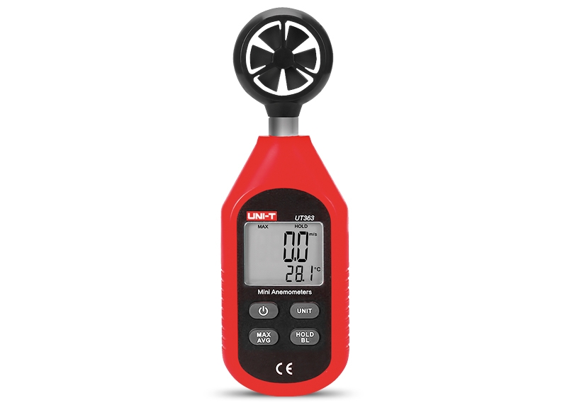 El anemómetro UT363 es un medidor de viento y temperatura. Este dispositivo está equipado con la última tecnología de detección magnética que puede mostrar la velocidad de lujo de aire y la temperatura ambiente en la pantalla LCD.
