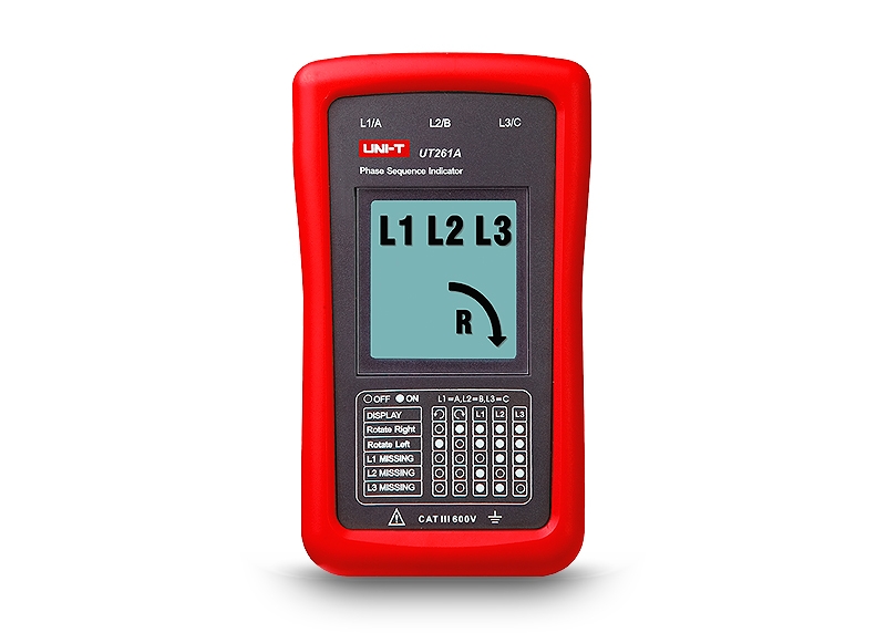 El UT261A es un detector de fases diseñado para definir la secuencia de fases y detectar la caída de fases (fase abierta).