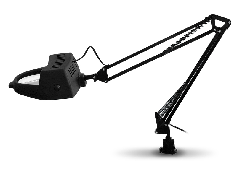 Lente de 4” y de gran alcance, 3 dioptrías. Brazo flexible extensivo hasta 91,5cm. Completamente ajustable a cualquier posición, gracias a los resortes y perillas que permiten un fácil manejo. Su abrazadera incorporada permite ajustarla a cualquier mesa o tabla de trabajo. Ofrece una excelente iluminación.