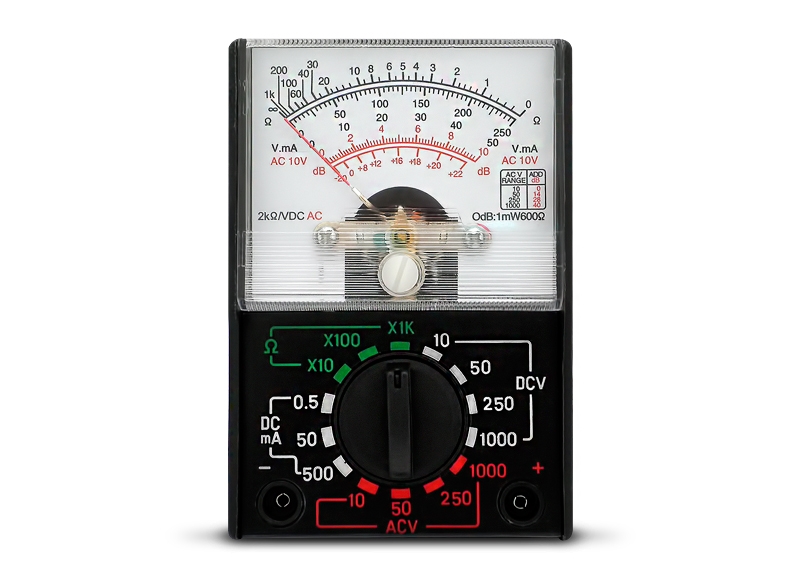 7 rangos de voltaje continuo. 4 rangos de voltaje alterno. 2 rangos de resitencia. De simple lectua. Tamaño de bolsillo 60 x 29 x 90mm.