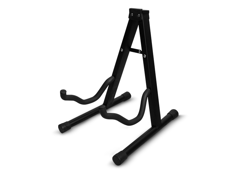 Estructura metálica. Sistema plegable con traba. Caños de apoyo revestidos en goma. Topes de goma antideslizante.