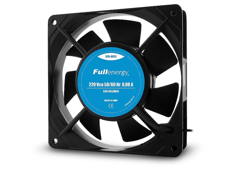 Alimentación 220VcaSistema de rotación RulemanMedidas 120x120x25mmRPM 2500Flujo de aire (CFM) 38Ruido (dB) 39